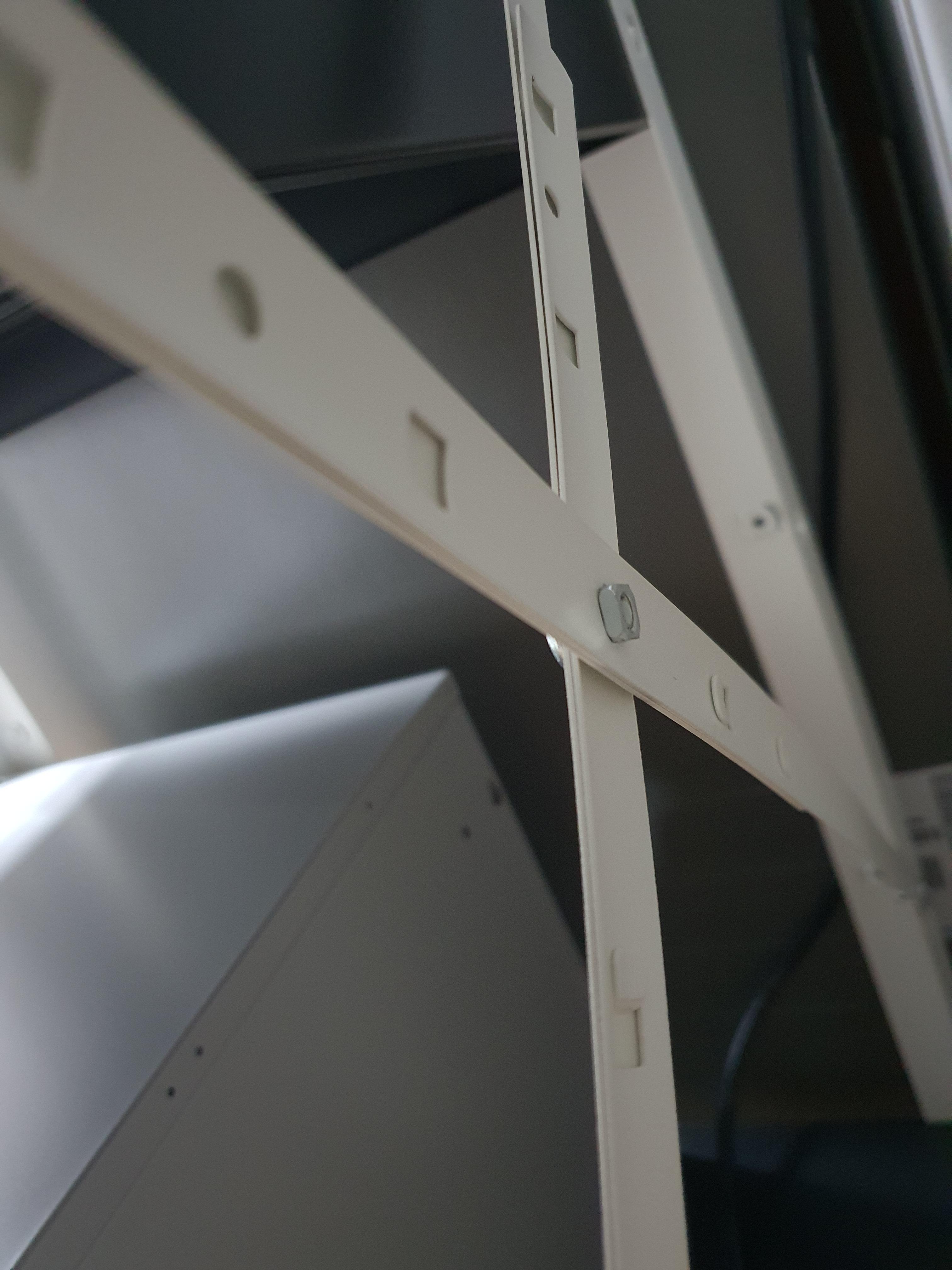 뒤쪽에 벽에 고정할 수 있으나 굳이 하지 않았다. 그리고 X 형태로 기둥프레임을 견고하게 하는 부분이 있는데 위와 같이 곡면이 기둥쪽으로 가도록 크로스해서 설치했다.